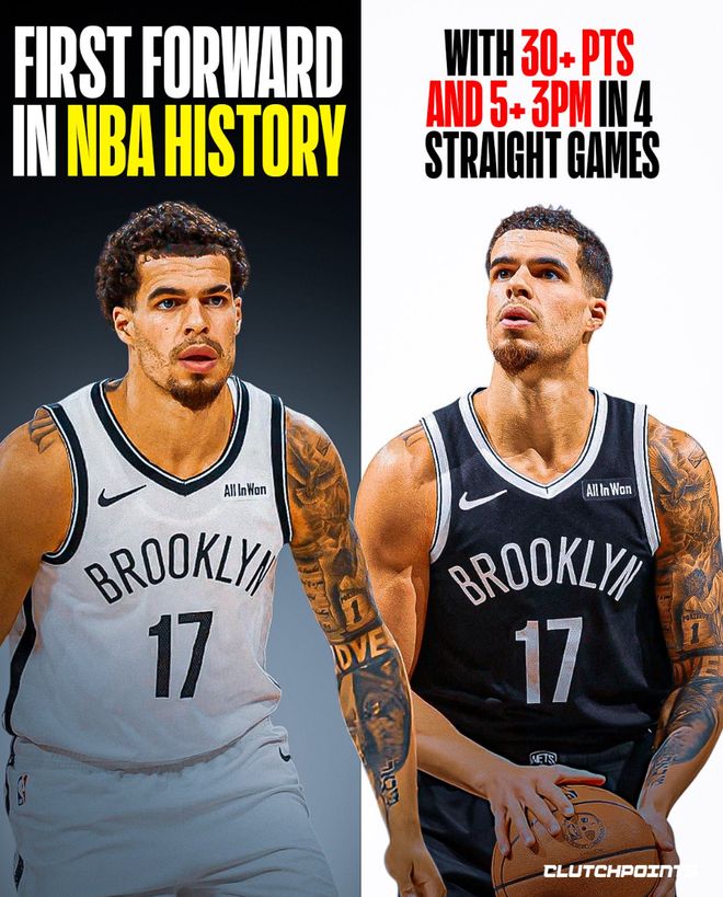 小波特本赛季的状态过于火爆,他让正在摆烂的篮网赢下很多不该赢的球,他目前场均32.6分钟,拿到25.6分7.3篮板3.2助攻0.9抢断0.2盖帽,命中率49.7%,三分命中率39.9%,他本赛季已经拿到9次30+,过去在掘金一年多都只有5次30+。